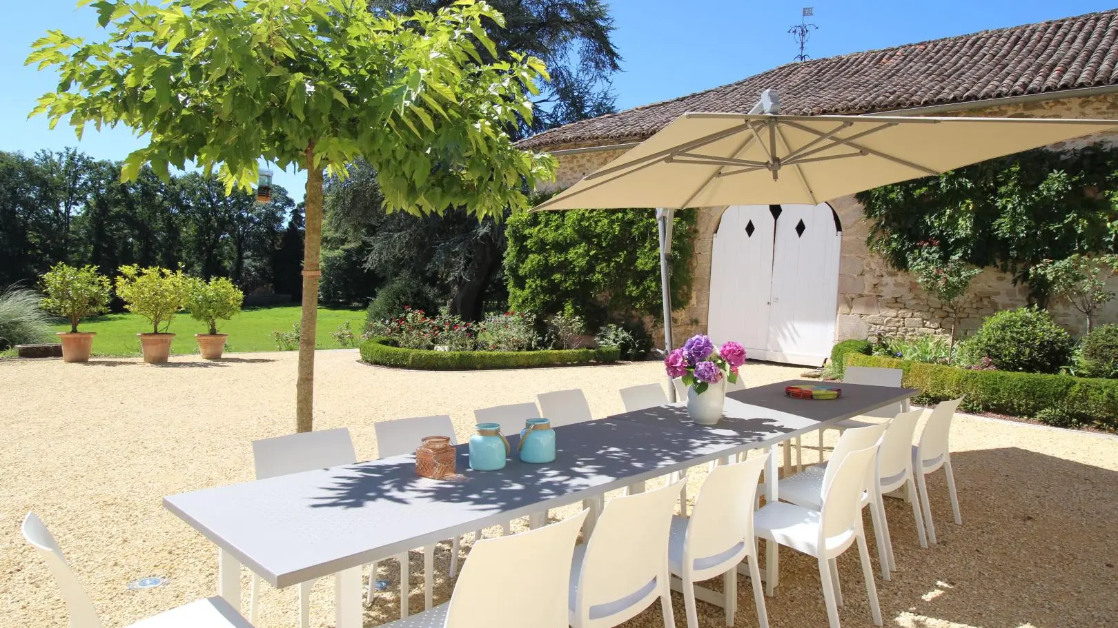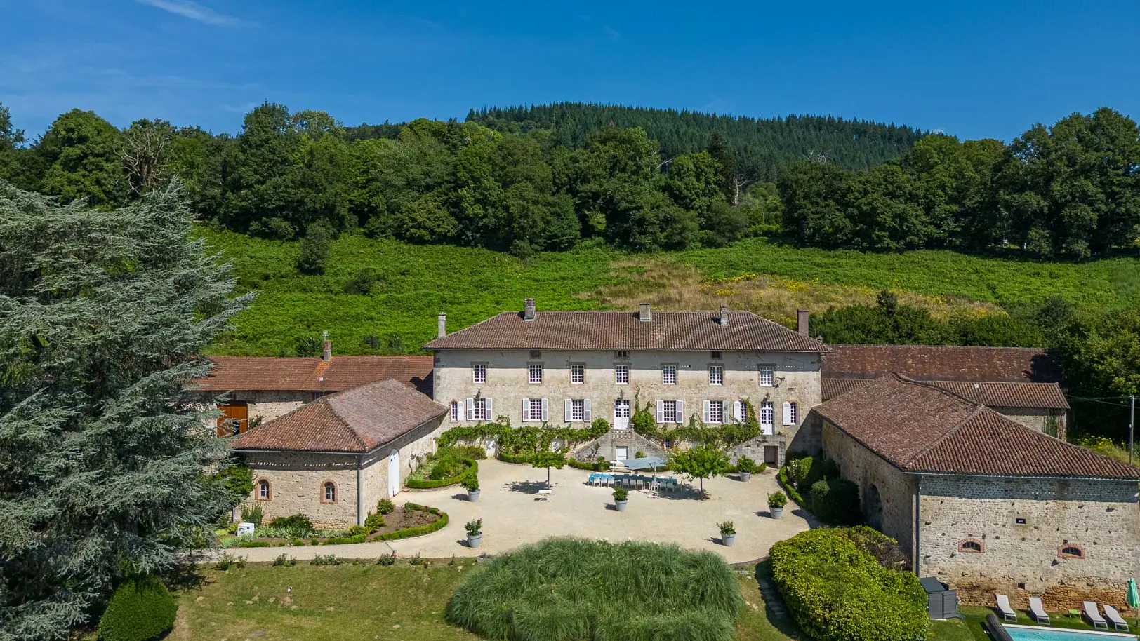 Le Domaine du Vignau est composé du gîte l'Orangerie (15 personnes) et de la superbe maison de maître 18ème ouvrant sur une cour d'honneur entourée de dépendances. La résidence secondaire des propriétaires, occupée très occasionnellement, est située à l'extrémité de la demeure. Le gîte dispose d'une piscine privée et chauffée de 12 m x 4m ouverte de mi-mai à mi-septembre (selon conditions météo), elle est exclusivement réservée à ce gîte. Une belle allée privée permet un accès pédestre ou cyclo à La Jonchère et ses commerces et services (400 m). Les Monts d'Ambazac sont réputés pour la pratique de randonnée, un sentier passe auprès de la maison. Sur place possibilité de chambres supplémentaires (jusqu'à 15 pers.). 2 bornes de recharge véhicule électrique.